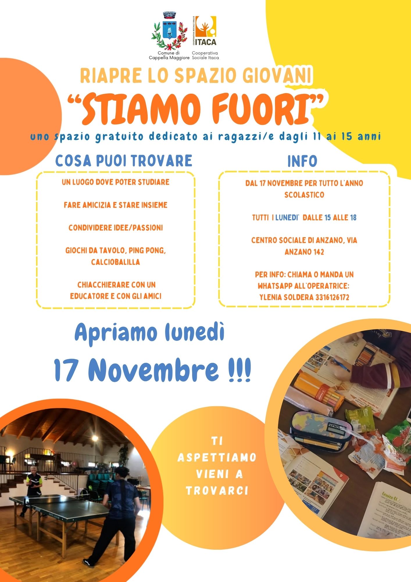 Un luogo dove poter studiare, fare amicizia, stare insieme, condividere idee e passioni, giocare con giochi da tavolo, ping ping o calcio balilla, chiacchierare con amici o un educatore! 💬✨