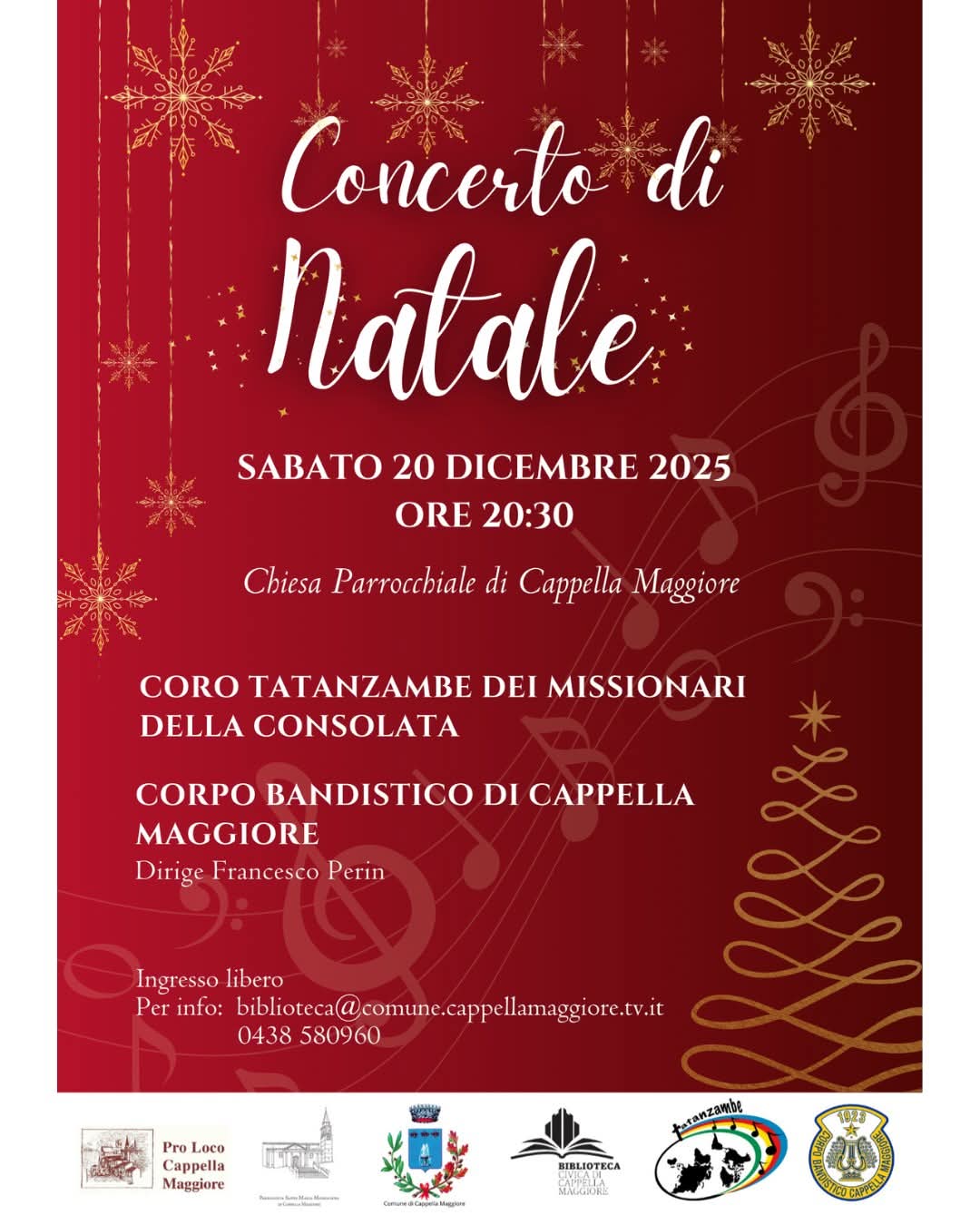 Sabato 20 dicembre 2025, alle 20:30, presso la Chiesa Parrocchiale di Cappella Maggiore, vi aspetta una serata di musica e magia natalizia! 🌟